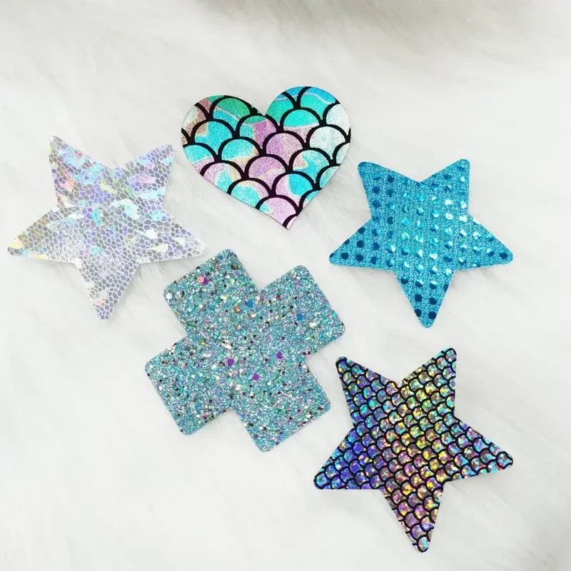 - Stijlvol en Speels Ontwerp: Deze tepelstickers combineren verschillende figuren zoals sterren, harten en kruisen voor een unieke look.