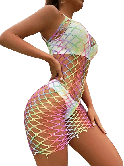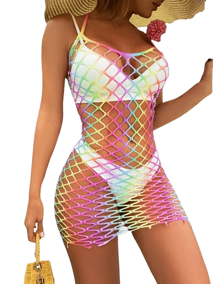 Regenboogkleurige Visnet Strandjurk - Laat je Kleurrijke Kant Zien