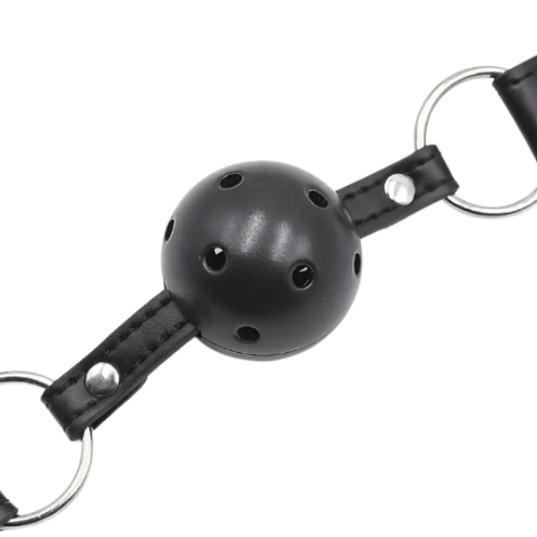 De gag bestaat uit een stevige bal met ventilatiegaatjes. Zo blijft het veilig en comfortabel, ook tijdens langer gebruik.
