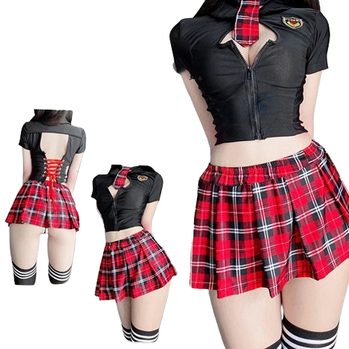 ✔ Echt schoolmeisje-design met geruit rokje en verleidelijke top