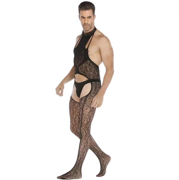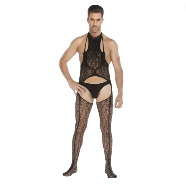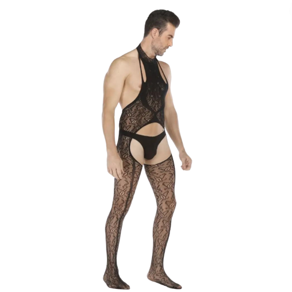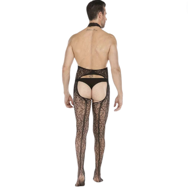 Met deze zwarte heren bodystocking laat je zien dat lingerie voor mannen allesbehalve saai hoeft te zijn. Het kanten patroon geeft een luxe uitstraling, terwijl de open achterkant direct de aandacht trekt. Deze bodystocking combineert elegantie met een pikante twist en is dankzij de elastische pasvorm geschikt voor maten M t/m XL.