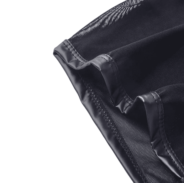 Fetish uitstraling: leerlook gecombineerd met doorschijnend mesh