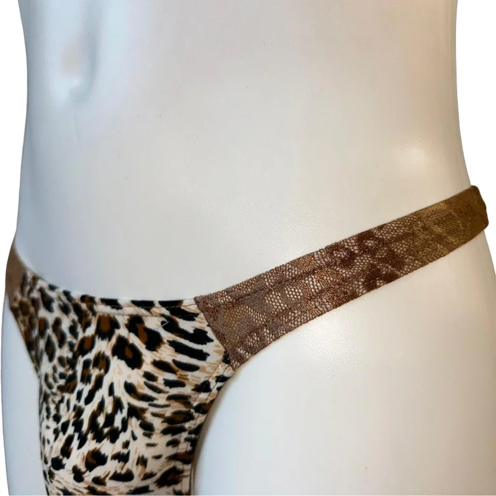 Ontdek ultiem comfort en stijl met deze exclusieve heren luipaard string met kanten band. Alleen te koop bij LekkerStout - de perfecte combinatie van verfijning en sensualiteit.
