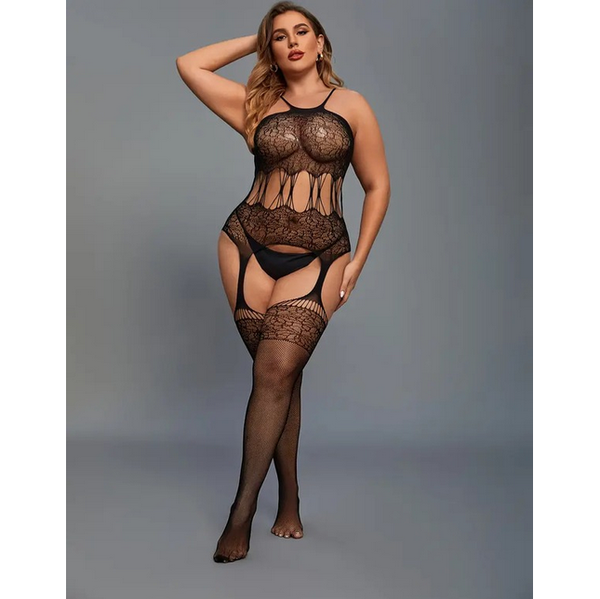 Plus Size Bodystocking met Jarretels en Kousen - Lekker Stout