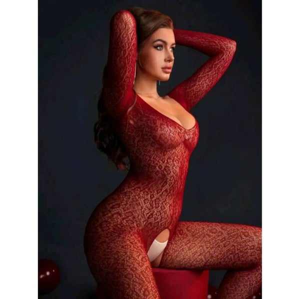 Met deze doorzichtige catsuit rood open kruis straalt u natuurlijke elegantie uit terwijl u uw sensuele kant omarmt. Het design balanceert perfecte tussen verfijning en verleiding, waardoor u zich zowel comfortabel als onweerstaanbaar voelt. De rode kleur symboliseert passie en kracht, eigenschappen die deze catsuit prachtig naar voren brengt.