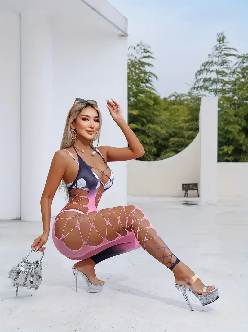 De gradient bodysuit dames lingerie in roze en paars is meer dan alleen maar lingerie - het is een fashion statement. Deze roze paarse bodysuit clubwear combineert elegantie met een vleugje speelsheid, waardoor jij altijd opvalt in de menigte.