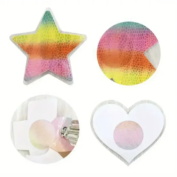 Ontdek onze kleurrijke tepelstickers in pastel tinten - perfect voor festivals, feestjes of een ondeugende avond. Deze ronde, ster- of hartvormige borstversiering zijn subtiel, draagbaar en geven je net dat extra beetje flair.