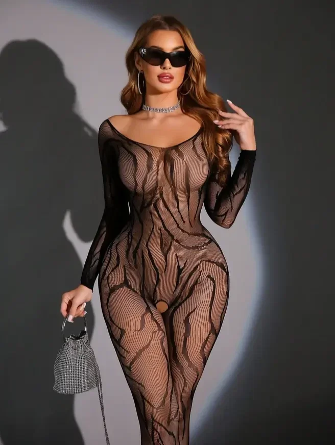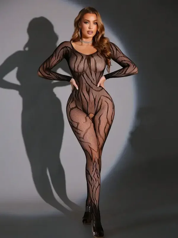 Deze zwarte bodystocking van netstof is mooi en sexy. Je voelt je zeker en sterk als je hem draagt.