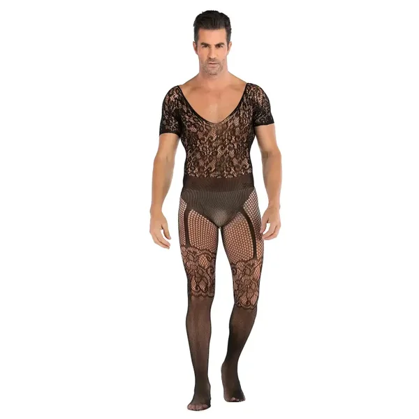Het kant geeft een luxueuze uitstraling, terwijl de open structuur van het visnet zorgt voor een pikante twist. De combinatie maakt deze body niet alleen verleidelijk, maar ook stijlvol en mannelijk.