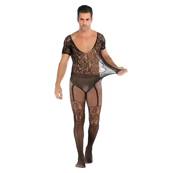 Deze heren body is pure verleiding met een vleugje klasse. De combinatie van zacht kant, visnetstof en een open kruis maakt hem onweerstaanbaar sexy. Deze heren visnet bodystocking is speciaal ontworpen voor mannen die zich graag sensueel, stoer én zelfverzekerd voelen. Dankzij het elastische materiaal past hij zich soepel aan jouw lichaam aan en benadrukt hij moeiteloos je vormen.