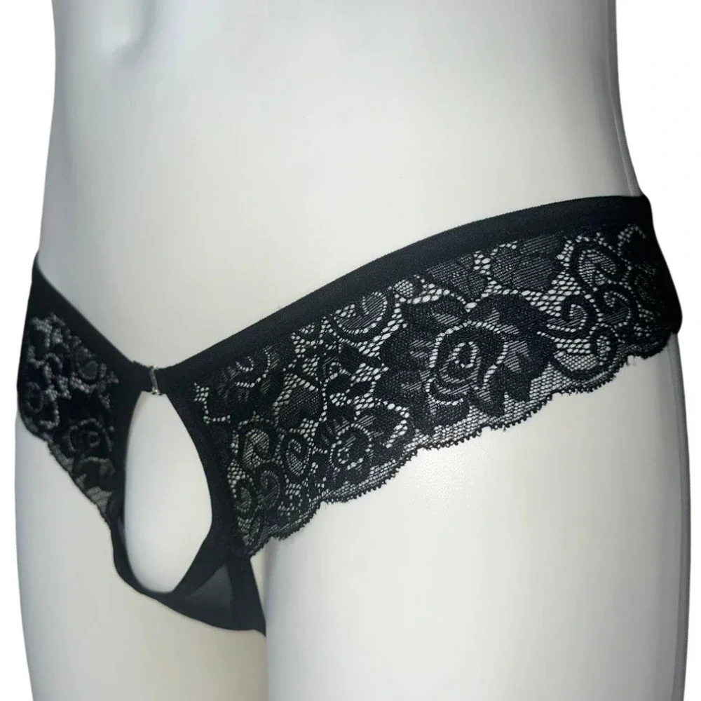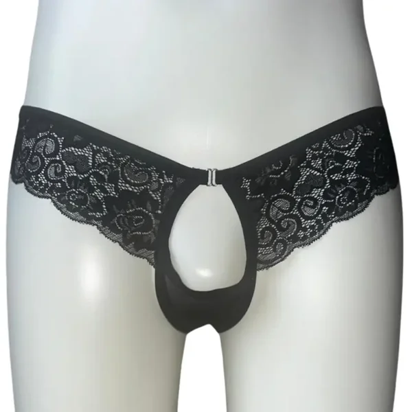 Zwarte Open Front Heren Slip - Kanten Look, Speels en Verleidelijk (M, XL)