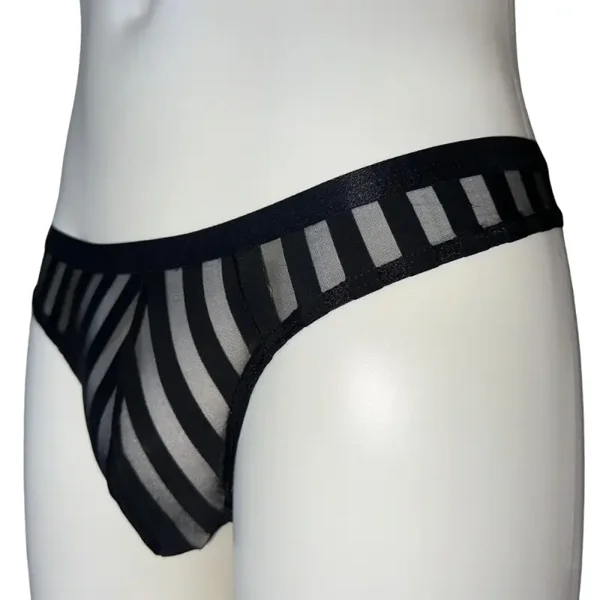 Deze zwarte transparante heren slip is gemaakt voor mannen die houden van een pittige, geraffineerde look. De verticale en diagonale stroken geven een spannende doorkijk, terwijl de zachte mesh zich soepel naar je lichaam vormt. Lekker licht, sensueel en toch comfortabel genoeg voor de hele dag.
