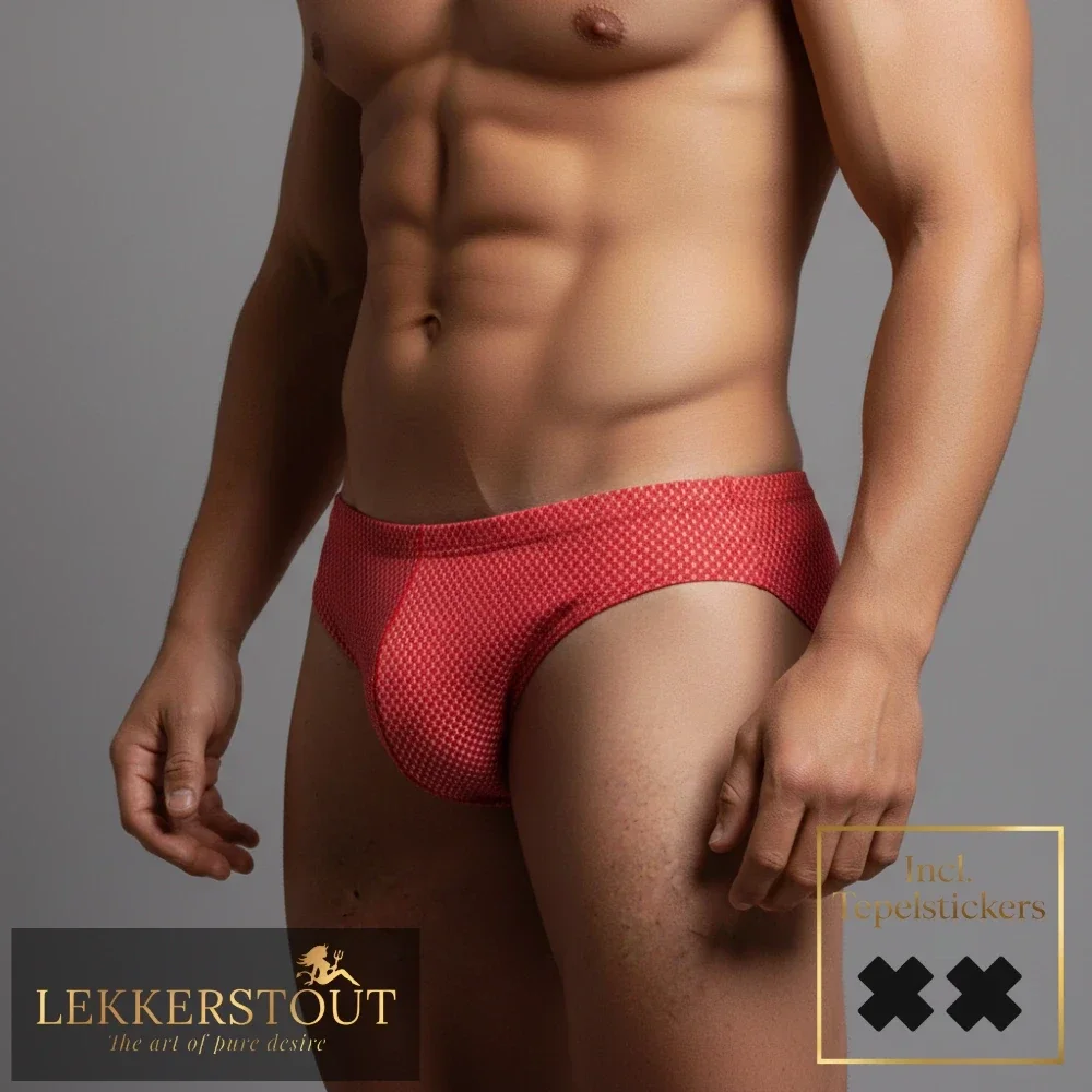 Deze rode heren slip met fijn motief is zacht, opvallend en heerlijk comfortabel. Een perfecte keuze voor mannen die stijl en verleiding willen combineren.