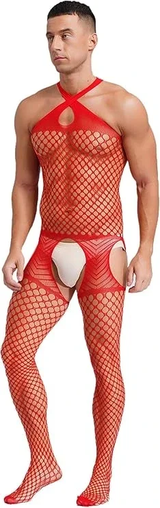 Heren Bodystocking met Gekruiste Halter en Open Kruis